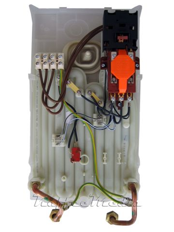Instantaneous water heater automatic – hydraulically controlled with bare wire heating system. Over wash basin device, closed (pressurized), 24kW, 400V.